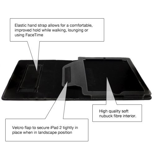 Snugg Leather Case Cover and Flip Stand with Elastic Hand Strap and Premium Nubuck Fibre Interior, High Quality (Black)Fits Amazon Kindle Fire Description